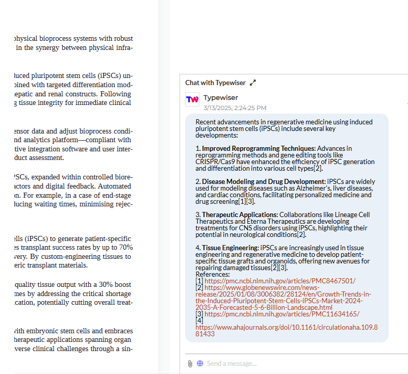 Typewiser searches the web for relevant sources and helps you build a rigorous bibliography. Get concise, well-supported answers to your questions – or find authoritative sources for your claims.
